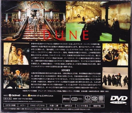 備考     :ジェル・ケース 帯・P6解説付 フランク・ハーバート原作の意識と宇宙の小説の映画化。リンチが作り出したグロテスクなまでの映像による偽SFの世界