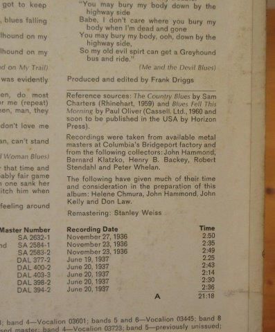 備考    :ロバート・ジョンソンはやはりCDではなく、レコードからの音で聴きたい